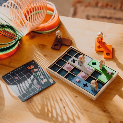 Copier le lienOrbite en vue ! Un jeu riche différents matériaux sur une thématique-passion, l'espace. Arrimez chaque astronaute à sa station spatiale pour éviter qu’il ne se perde dans l’espace infini…