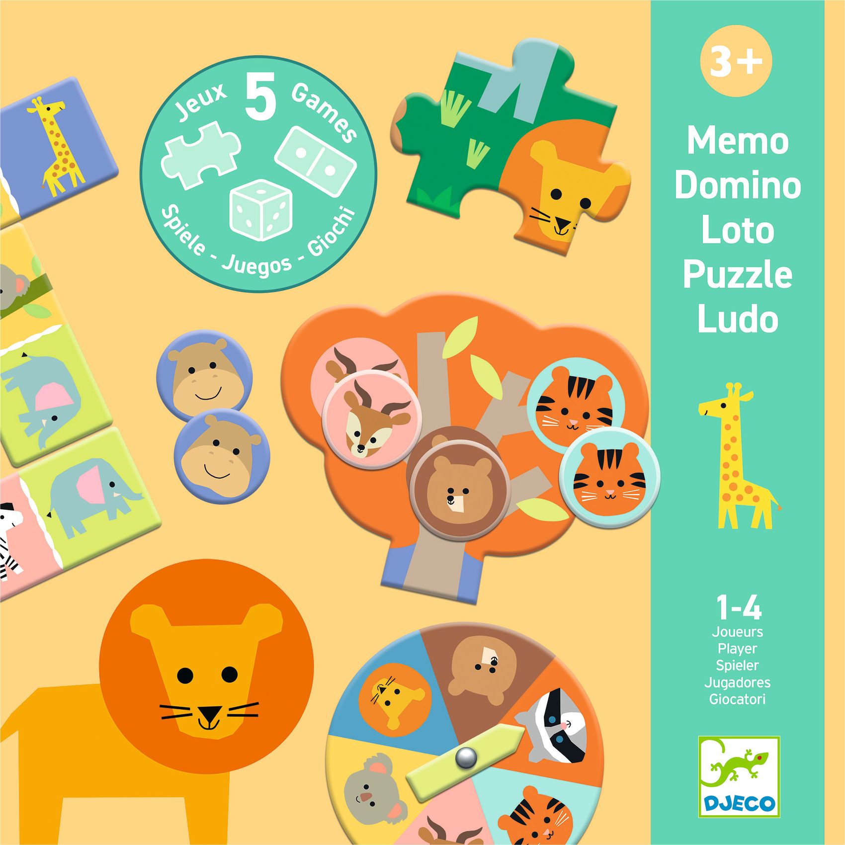 Copier le lienUn coffret complet qui propose 5 jeux éducatifs incontournables : mémo, loto, domino, puzzle (12 pièces) et jeu de parcours, parfaits pour amuser les enfants tout en développant leur logique, leur mémoire et leurs aptitudes d'observation.